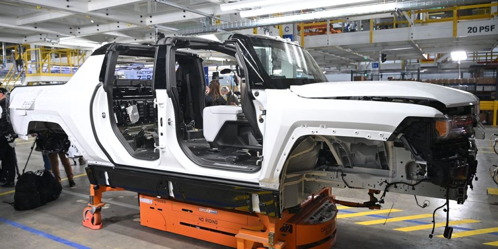 A GMC Hummer EV on an assembly line at GM’s plant in Detroit, Michigan.