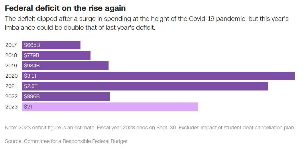 - Economic expansion is projected at 3.8% nominal rate in 2023 and 3.9% nominal rate in 2024, underscored by growing concerns over the pace of debt and deficit which are growing much faster than the economy.