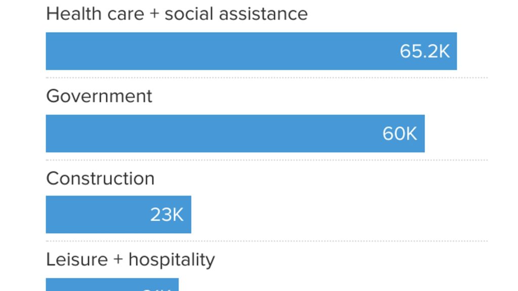 The biggest area for growth was health care and social assistance, with 65,200 jobs added, according to data from the Labor Department. That category expanded by more than 70,000 new positions when education is included, as some economists do.